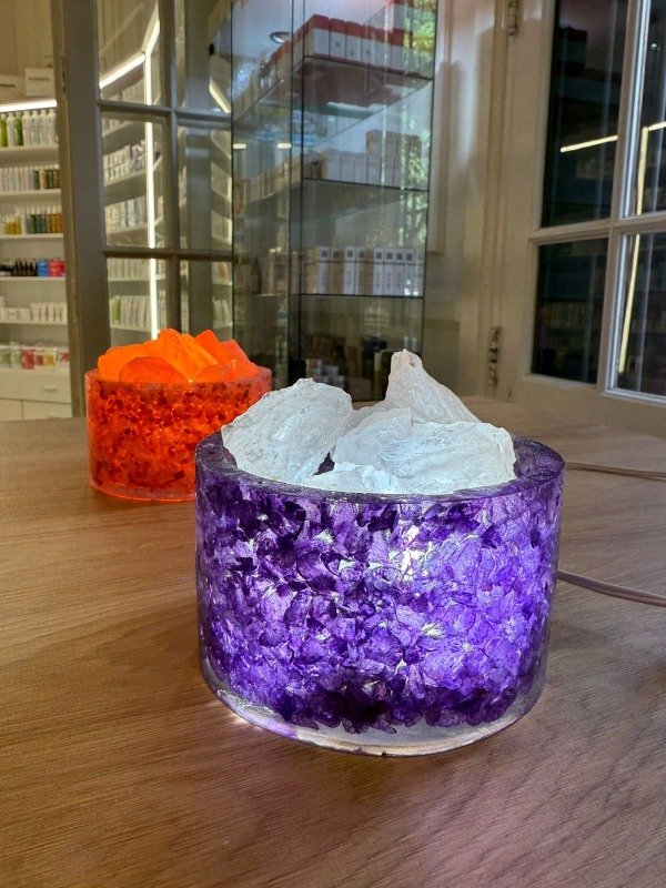 Velador bellísimo artesanal y único de Amatista y Cuarzo.