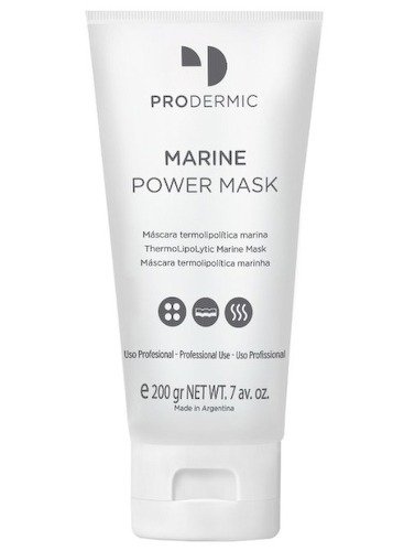 MARINE POWER de 500 ml de Prodermic. Máscara termolipolítica marina reductora, que, además, nutre, humecta, repara y drena. Posee activos termolipolíticos dobles, uno de apertura y el otro vasodilatador profundo. Contiene algas francesas y cafeína liposomada. Activos: *Algas Laminarias, Fucus y Sedimentos Marinos de origen francés. Algas reductoras, drenantes y reparadoras de la piel. Son las únicas que cuentan con el proceso biotecnológico de estallido celular, que asegura la máxima liberación y penetración. *Activos termolipolíticos dobles: uno es de apertura, genera una hiperimia visible; el otro es vasodilatador profundo, acelera el metabolismo en el tejido adiposo, desencadenando una liberación más rápida de las grasas. Todo en una fórmula exquisita que nutre, humecta, reparando y drenando como ninguna otra! ALTAMENTE REDUCTORA. Se coloca y se deja actuar durante 20 minutos y luego se retira. Se puede complementar con el Cellugel.