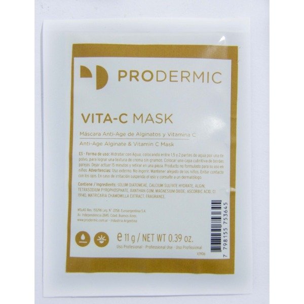 La publicación contiene 1 VITA-C MASK de 11 gr de PRODERMIC. Estimula el colágeno de la piel sin efecto ácido. Ideal para pieles sensibles o sensibilizadas. Reduce finas arrugas Aumenta la turgencia Atenúa poros dilatados
